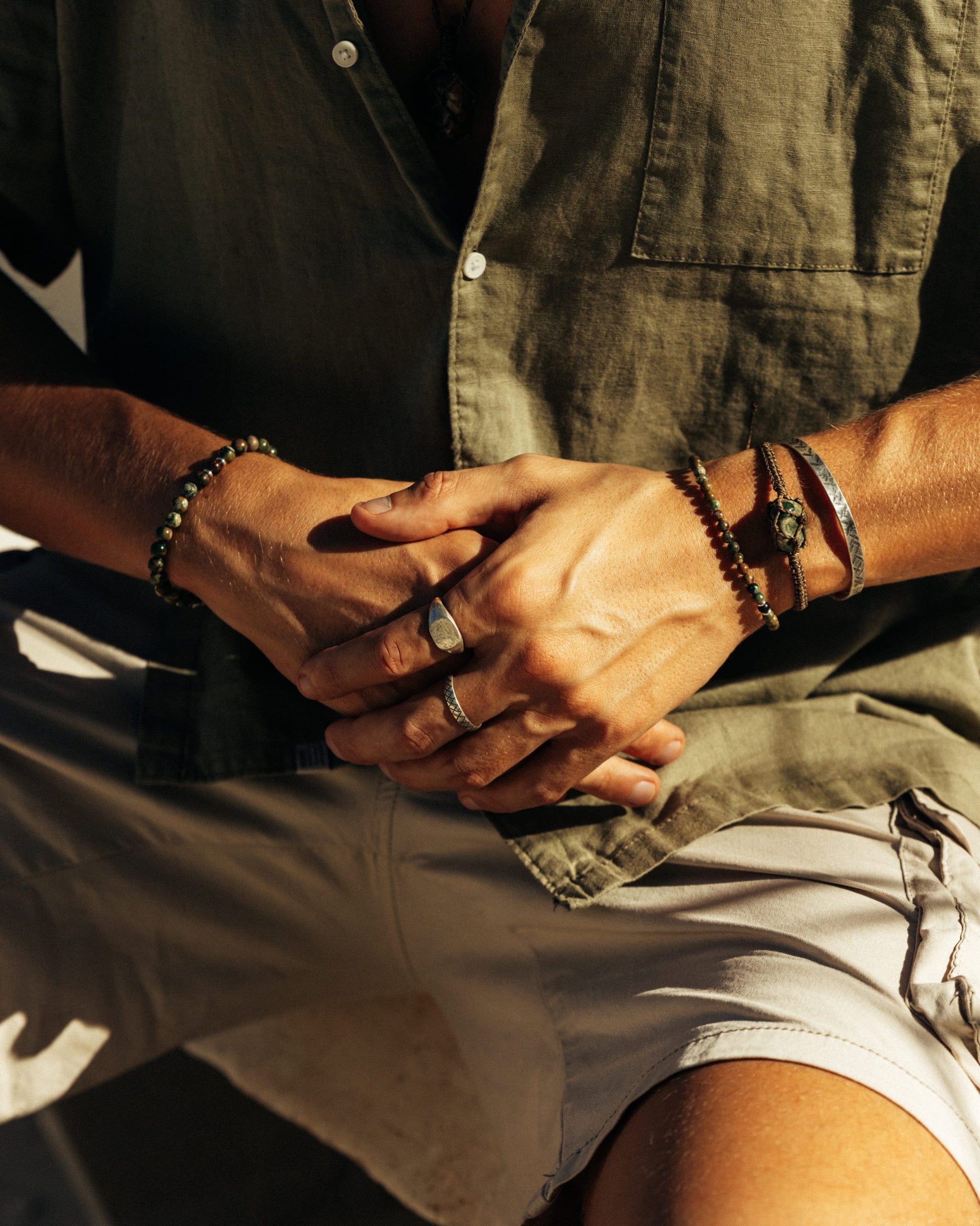 Bracelet made of 6mm diameter Rhyolite natural stones with a 4mm diameter Bronzite center stone.
