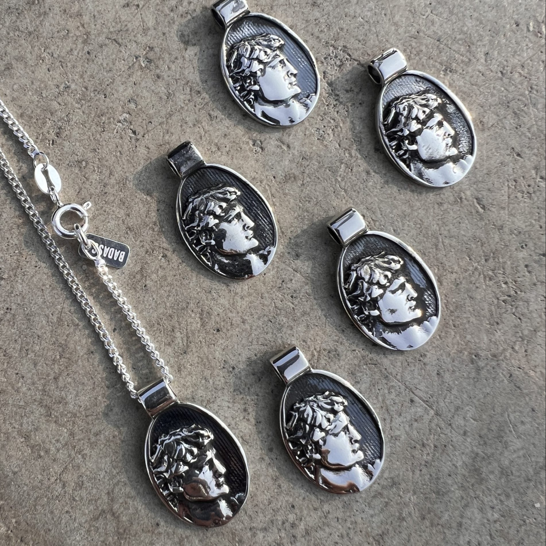 • Medalla: Plata de Ley 925 con busto masculino inspirado en el arte griego clásico